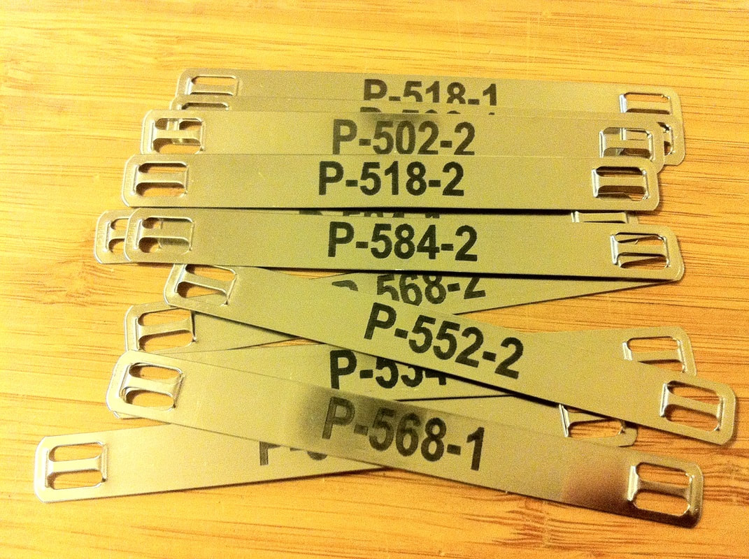 e3 Labels also supply Cable Markers (available with or without sleeves), for wiring identification and Equipment and Valve tags. Stainless Steel Cable Markers Available in a range of sizes. Please state the size required for your application. Stainless Steel Valve Tags Stainless Steel Valve Tags are available the follow sizes 10mm(W) x 50mm(L) 10mm(W) x 70mm(L) 20mm(W) x 50mm(L) 20mm(W) x 70mm(L) Other sizes available on request. |